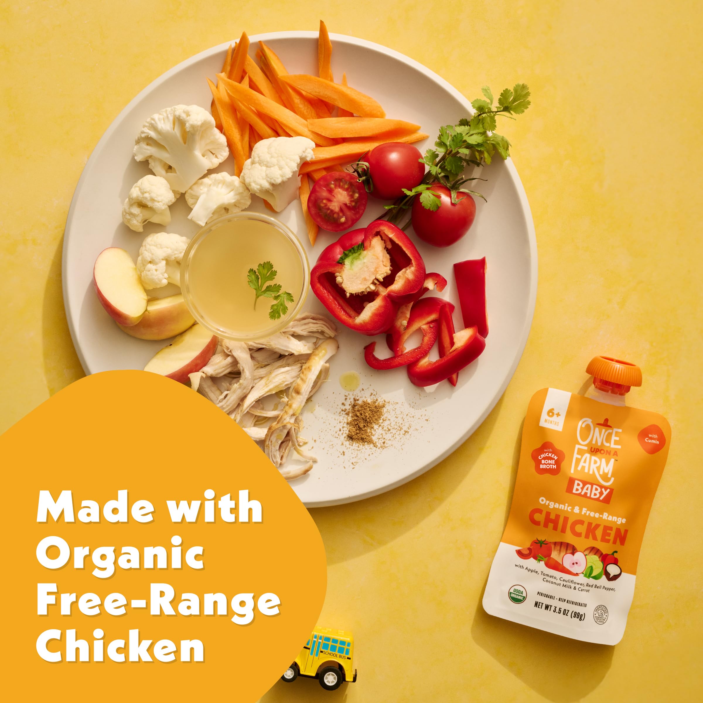 Once Upon a Farm Apple, Chicken Bone Broth, Tomato, Cauliflower Organic Baby Food Pouch, 3.5oz